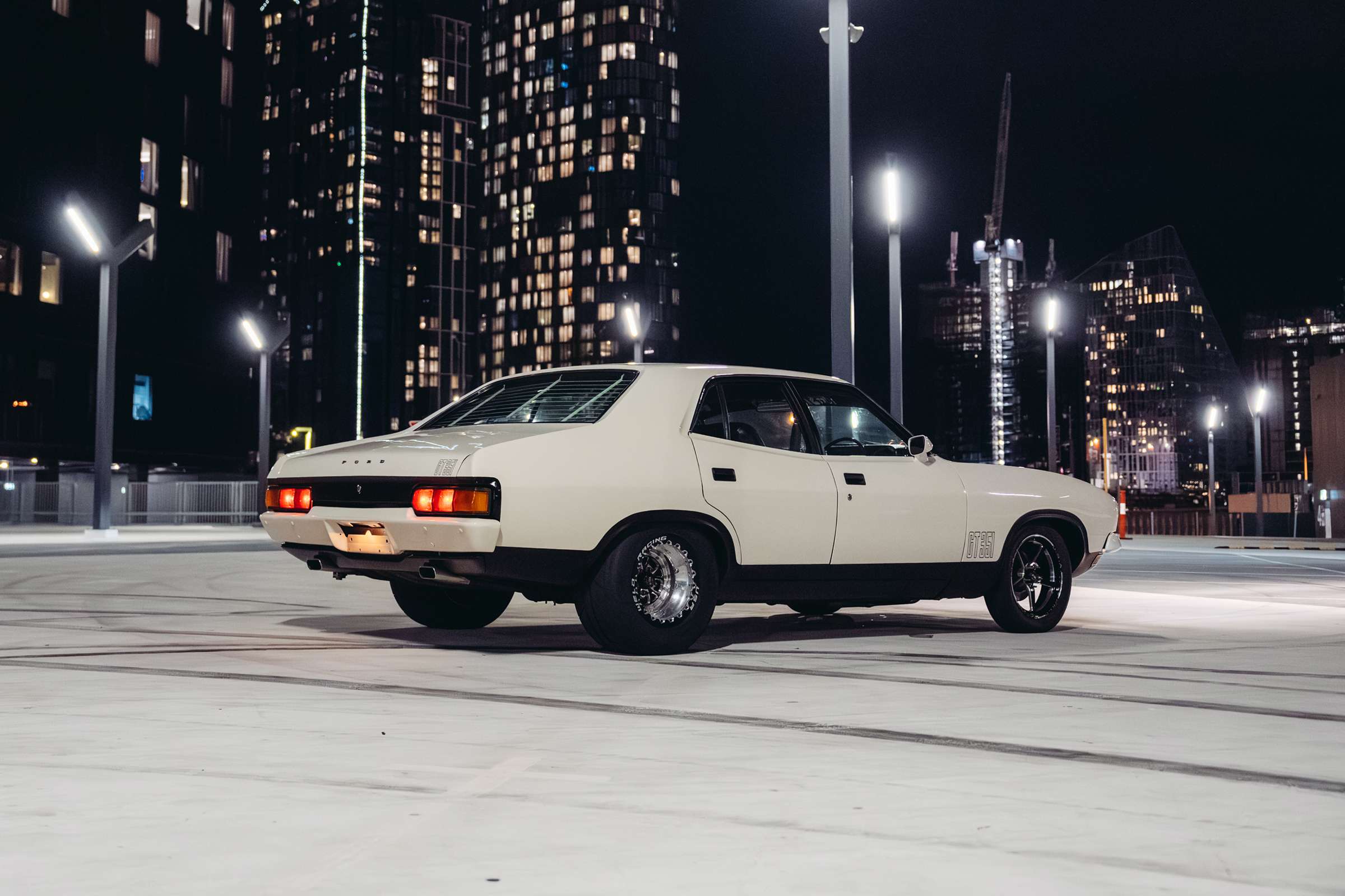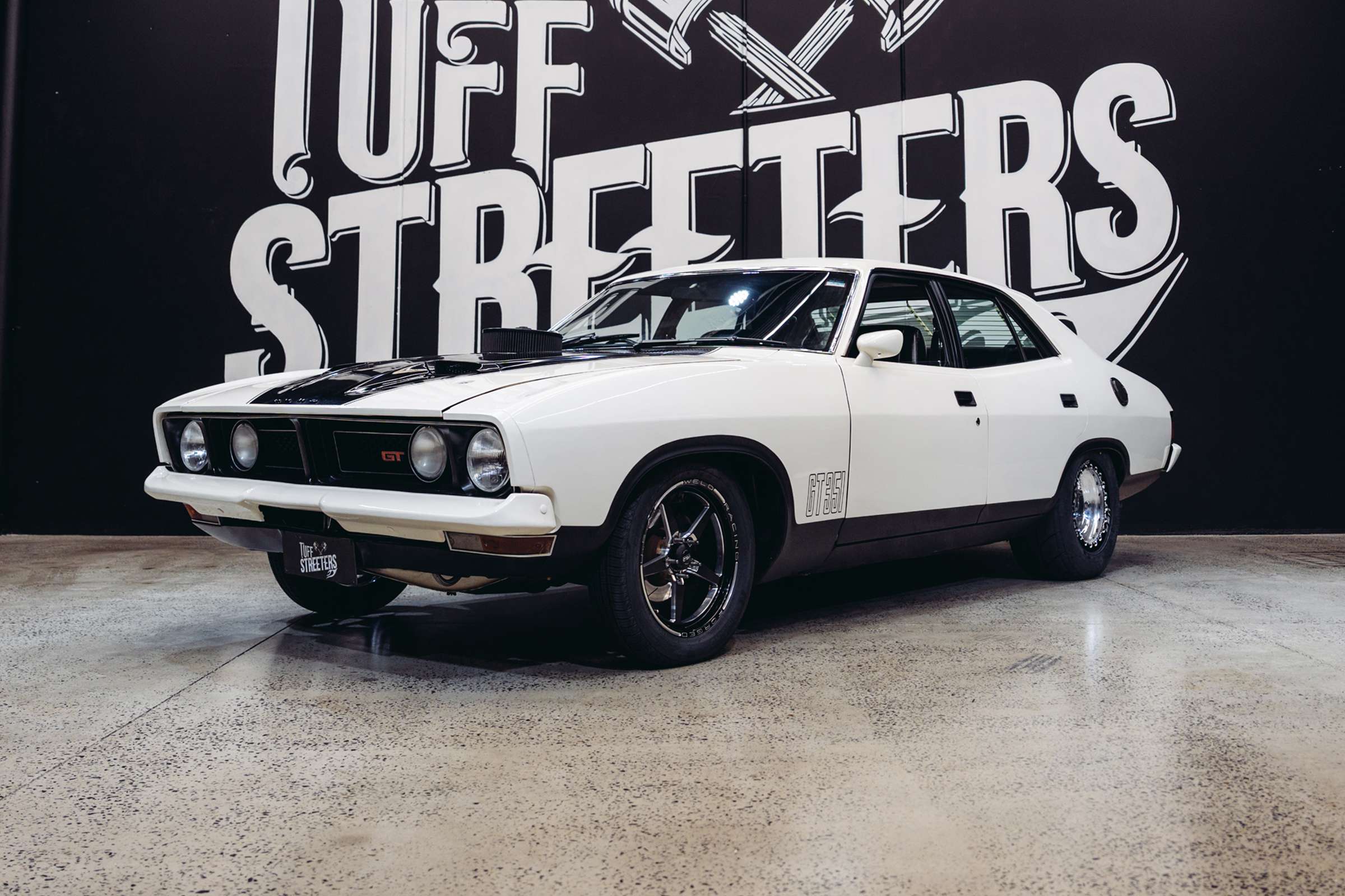 You’re looking at the ultimate street and strip weapon, a full rotisserie built 1975 Ford Falcon XB GT Tribute that’s as tough as it is iconic. Drenched in Polar White with GT blackouts, this machine isn’t just a head-turner, it’s a tyre frying tribute to Aussie muscle at its peak.