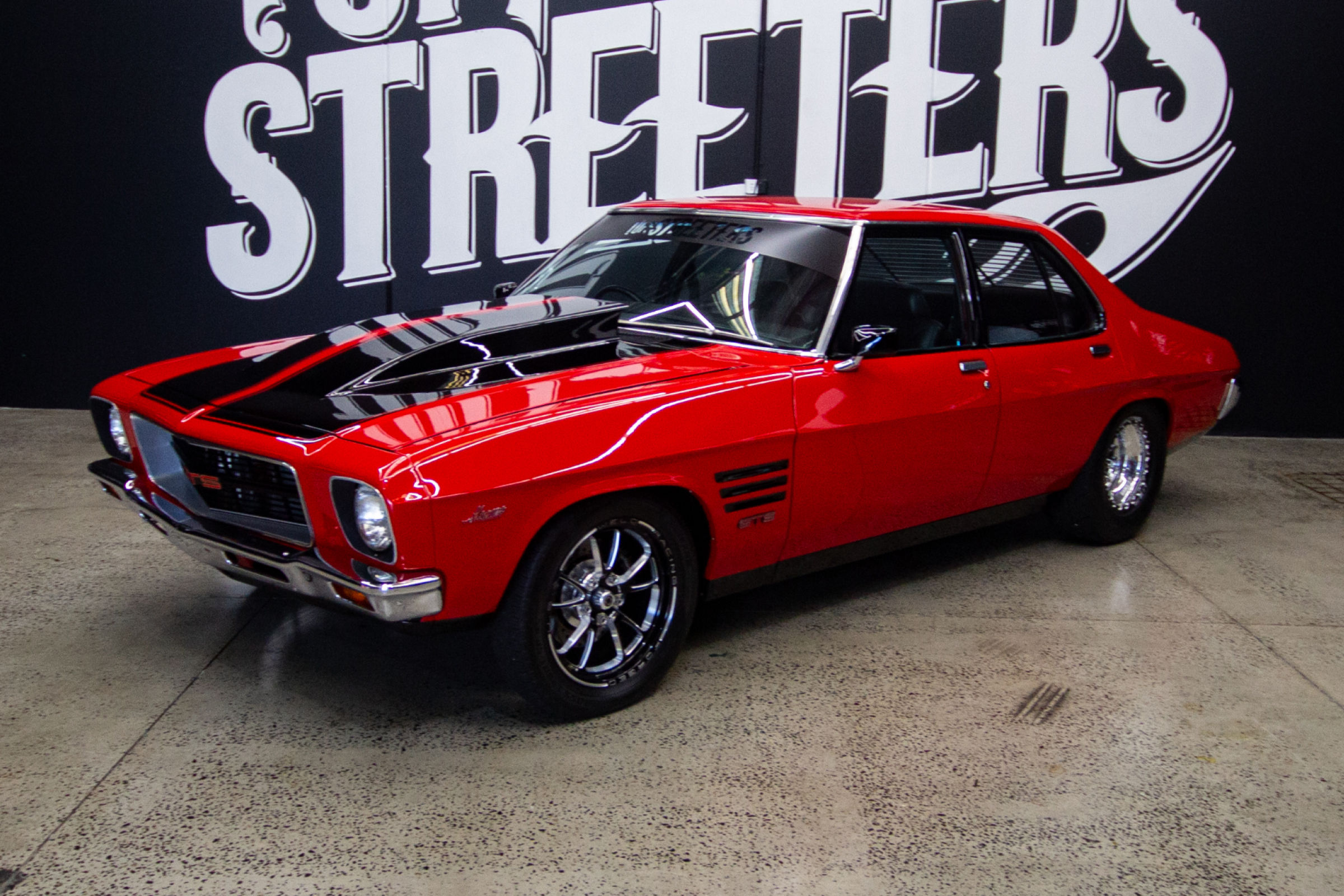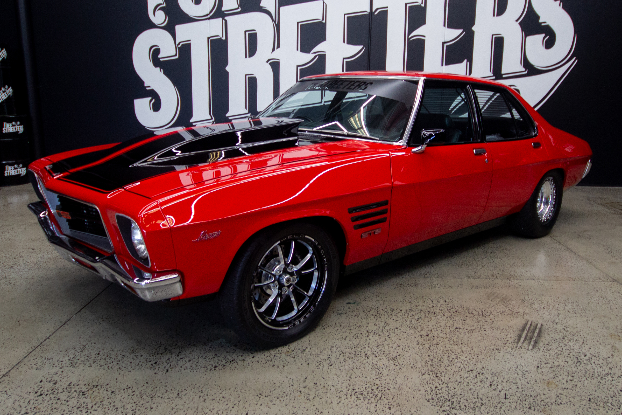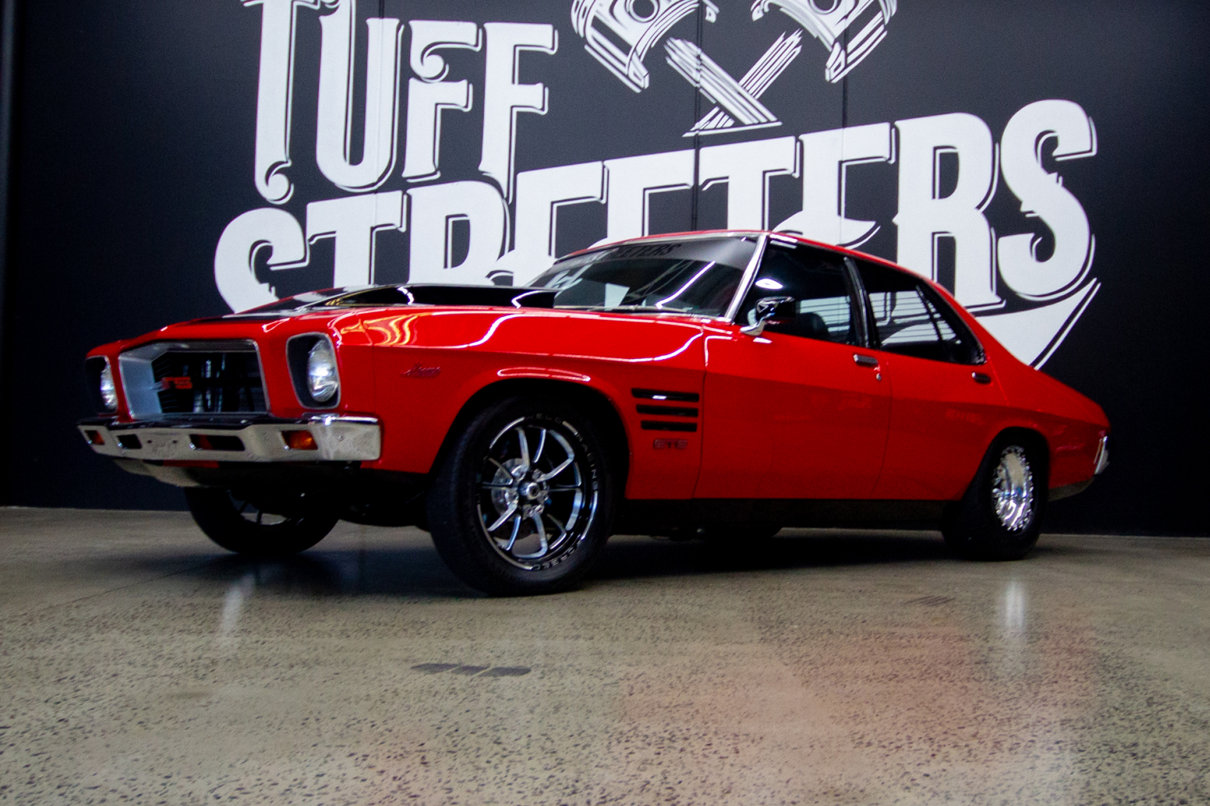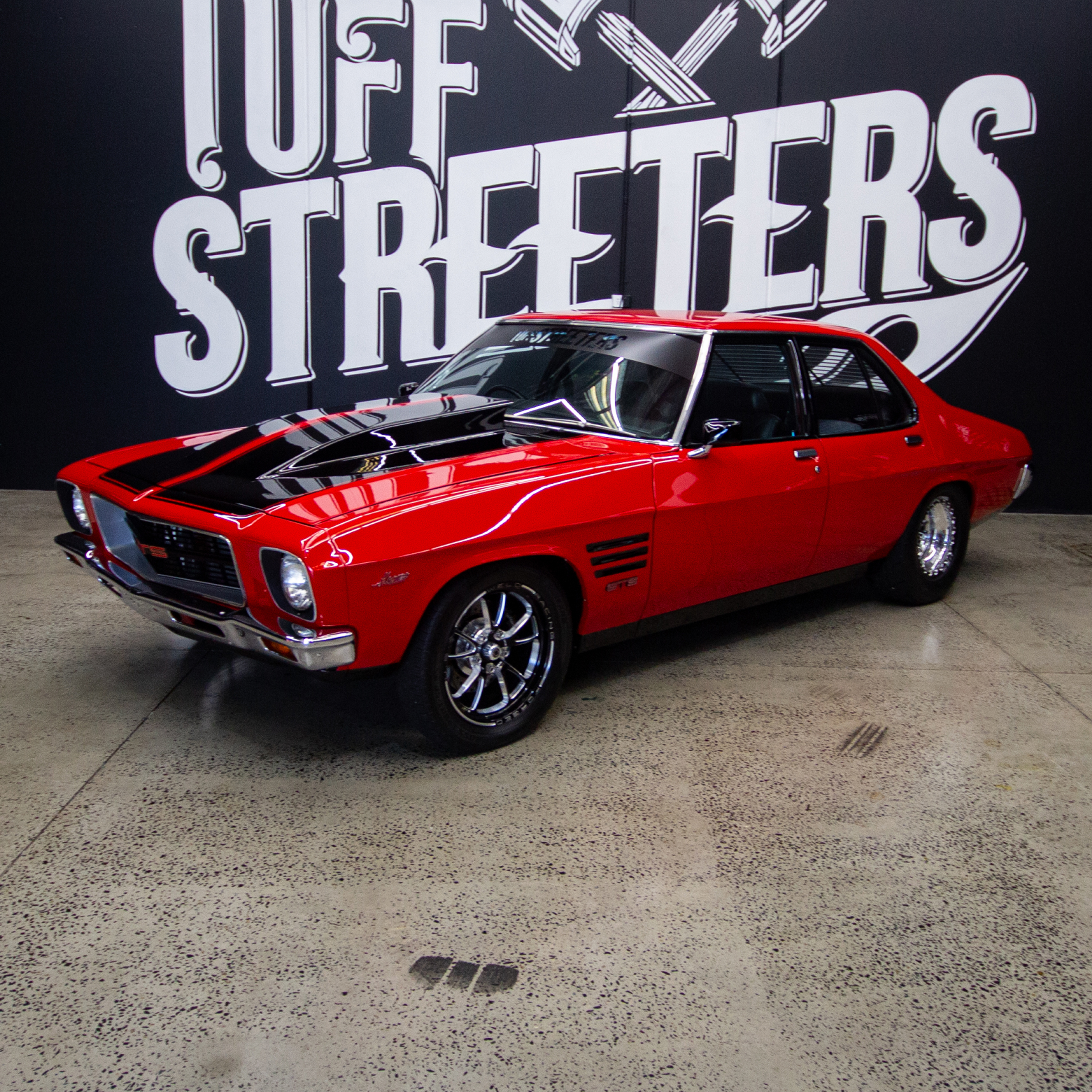 This 1974 Holden HQ GTS Monaro is a genuine factory L31 car finished in Salamanca Red and rebuilt through a ground up bare metal, nut and bolt restoration. Its 383ci Chevrolet V8 delivers around 580 horsepower and is paired with alloy cylinder heads, a TH400 automatic, 4800rpm stall converter and a 9-inch rear end featuring an adjustable four link setup, 31-spline Moser billet axles and 3.9:1 gears. Riding on Weld V-Series wheels with beadlocked rears, Wilwood brakes and a fully restored factory style houndstooth interior, it stands as a properly executed top to bottom build that combines genuine Monaro pedigree with a serious street and strip mechanical package.