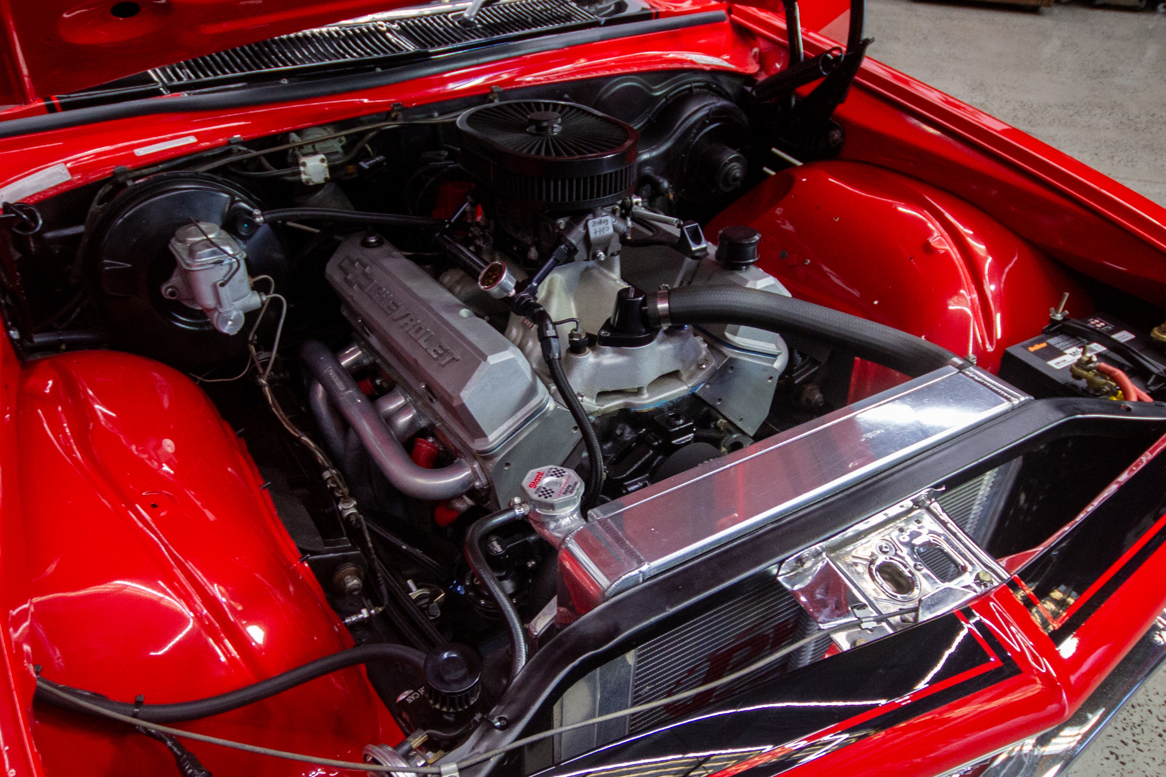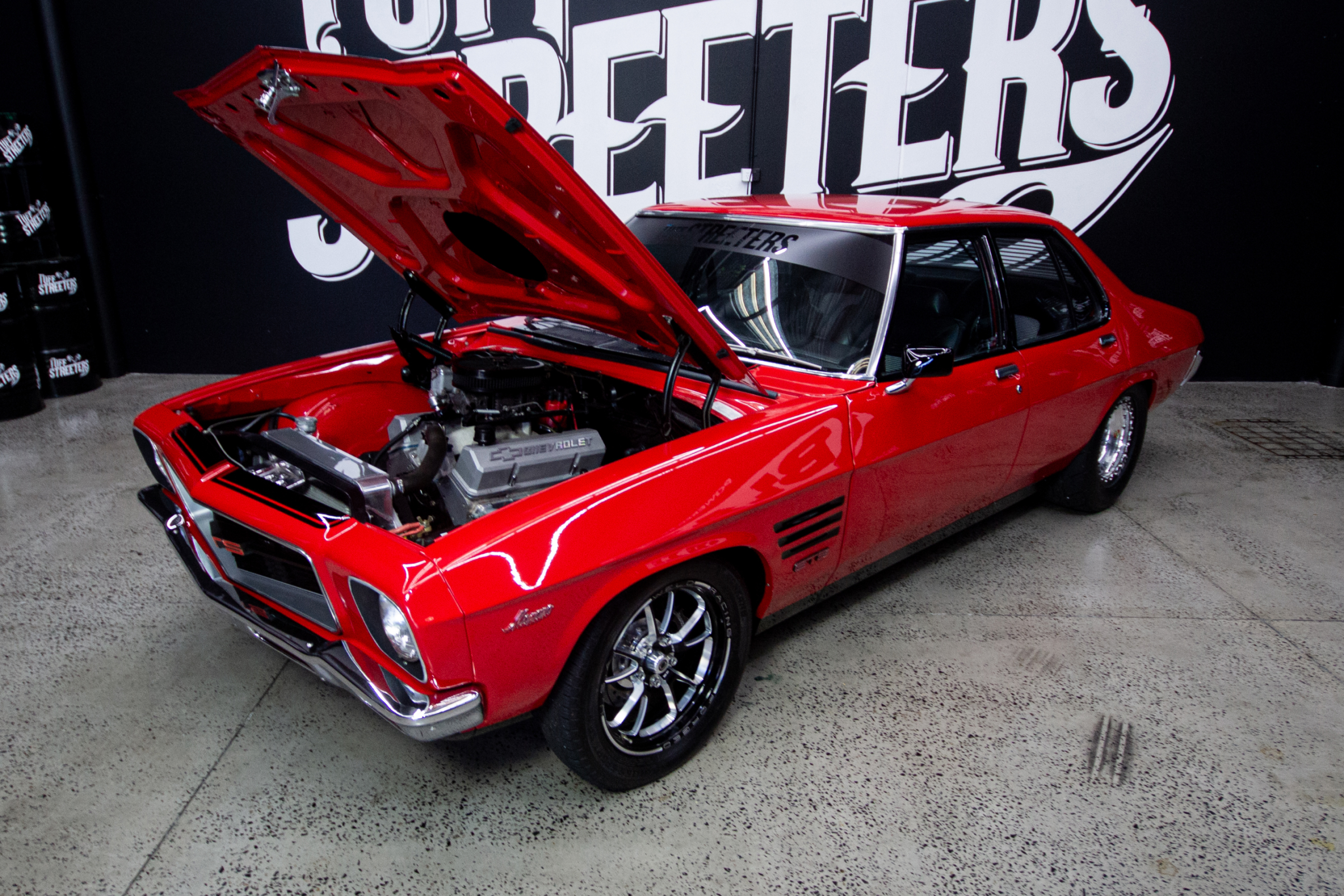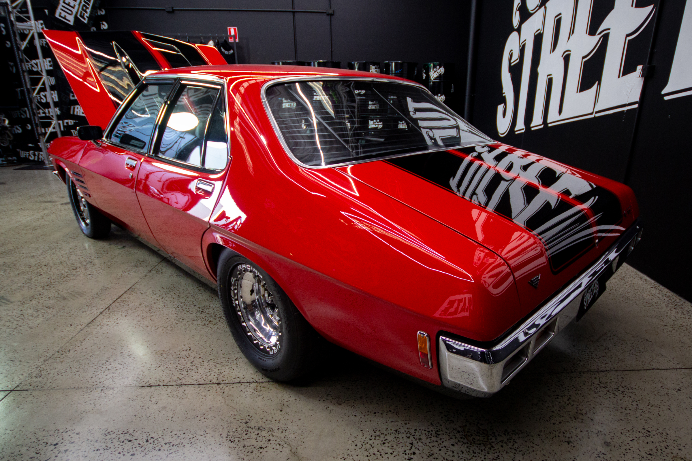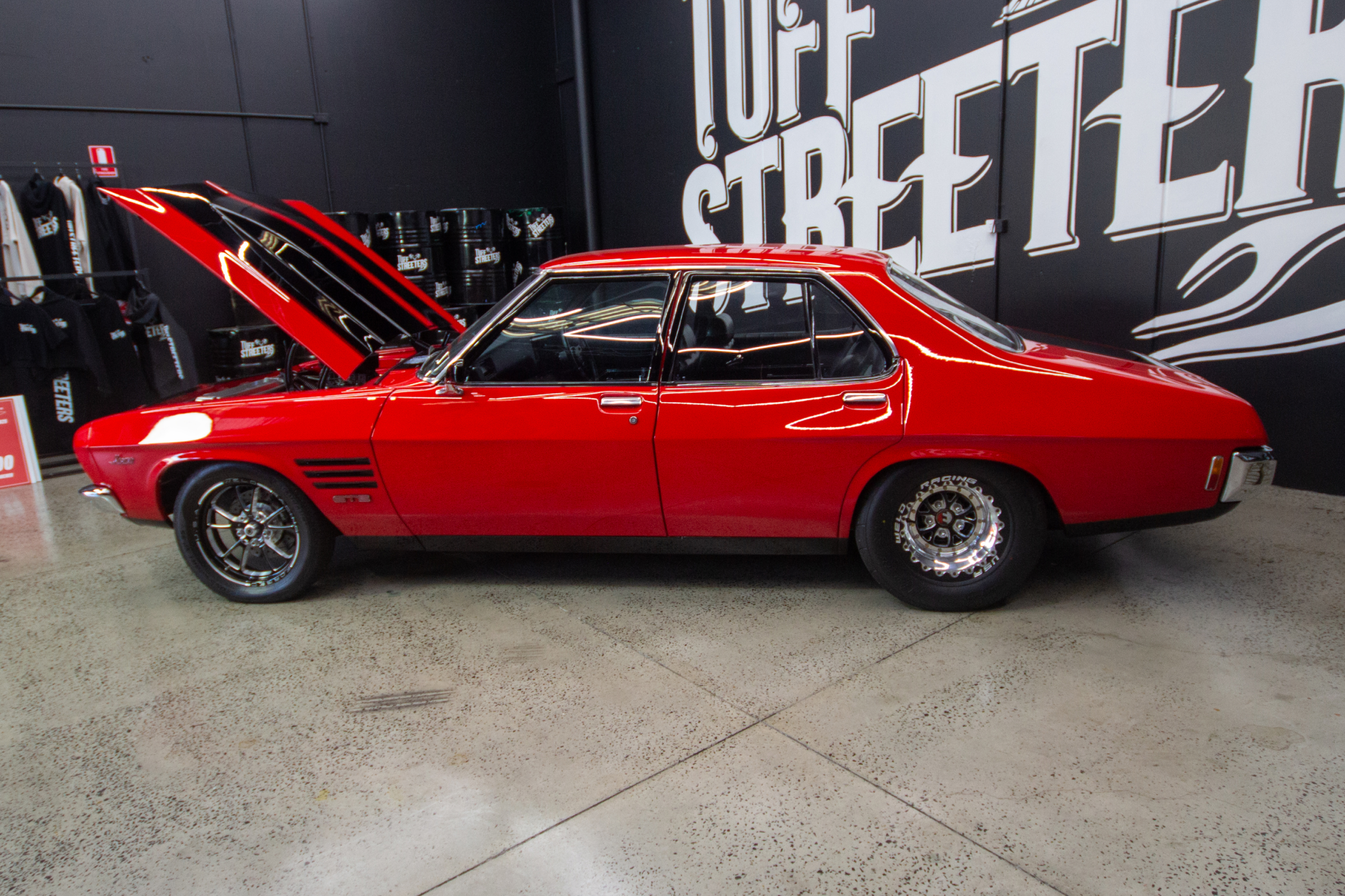 This 1974 Holden HQ GTS Monaro is a genuine factory L31 car finished in Salamanca Red and rebuilt through a ground up bare metal, nut and bolt restoration. Its 383ci Chevrolet V8 delivers around 580 horsepower and is paired with alloy cylinder heads, a TH400 automatic, 4800rpm stall converter and a 9-inch rear end featuring an adjustable four link setup, 31-spline Moser billet axles and 3.9:1 gears. Riding on Weld V-Series wheels with beadlocked rears, Wilwood brakes and a fully restored factory style houndstooth interior, it stands as a properly executed top to bottom build that combines genuine Monaro pedigree with a serious street and strip mechanical package.